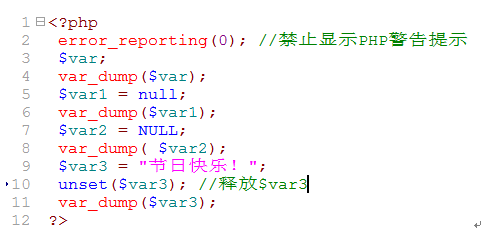 NULL(NULL):NULL是空類型,對大小寫不敏感,NULL類型只有一個取值,表示一個變量沒有值,當被賦值為NULL,或者尚未被賦值,或者被unset(),這三種情況下變量被認為為NULL。